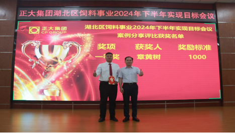 2024年实现目标会议中的优秀案例经验交流中,章黄树代表随州正大汇报荣获一等奖,受到湖北区总裁亲自颁奖。